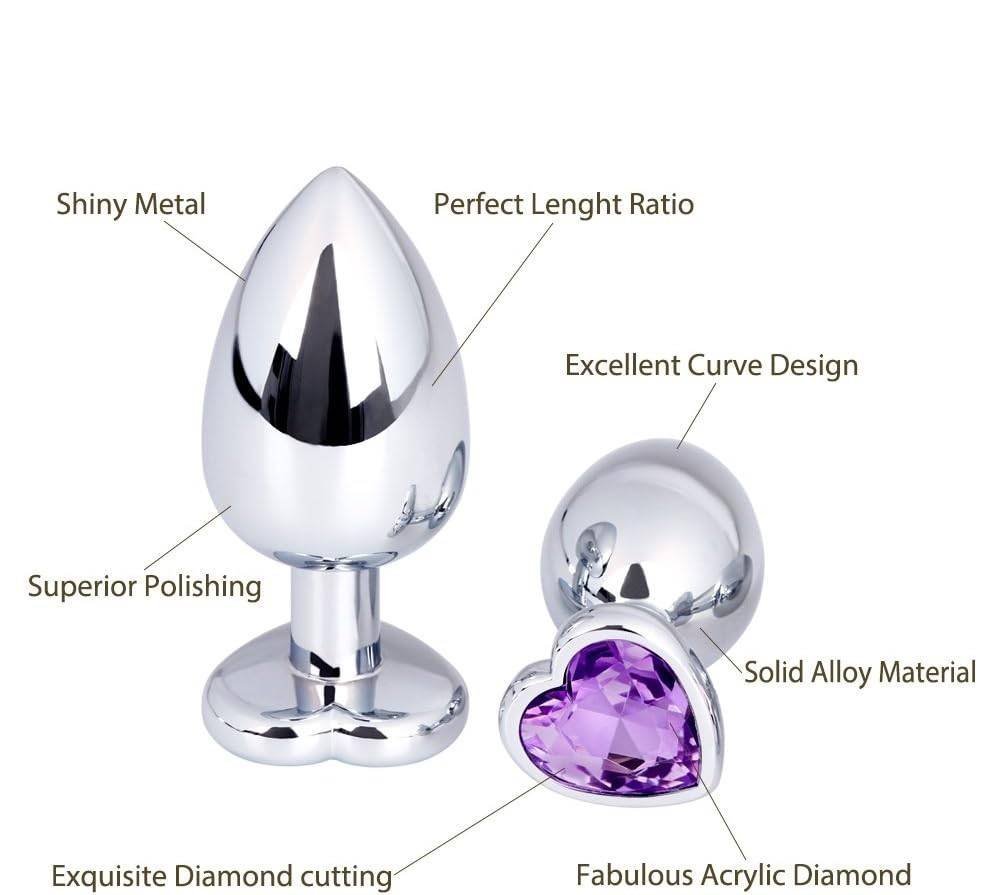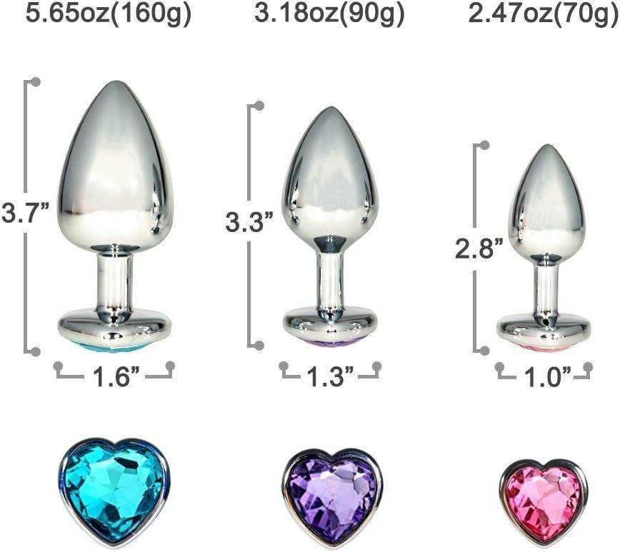 3 Plug Anal Acero Inoxidable Forma Corazón Coqueteo Dilatador Anal de Metal Chico Mediano Grande