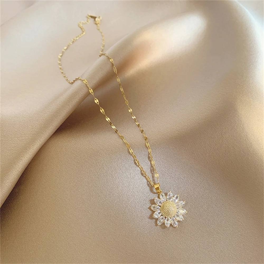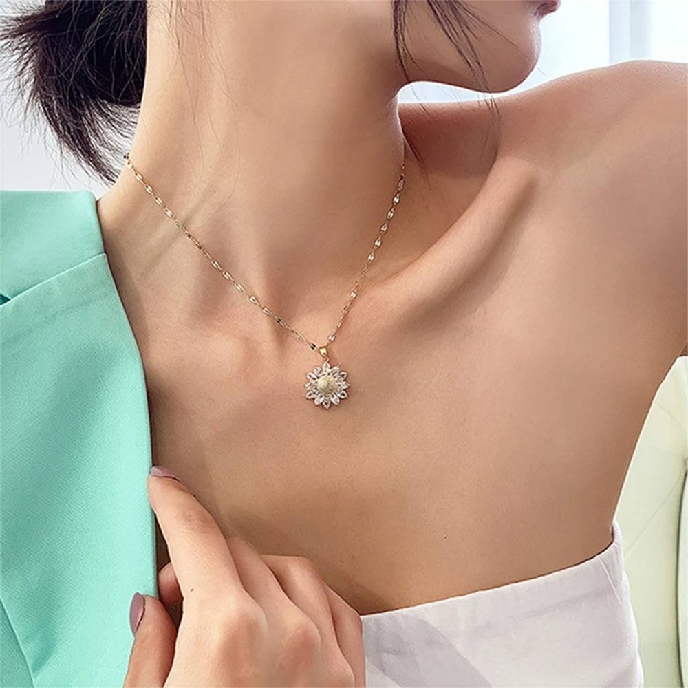 Collar Colgante Zirconia Girasol Mujer Cadena Inoxidable Joyería Fiesta Boda Verano Regalo