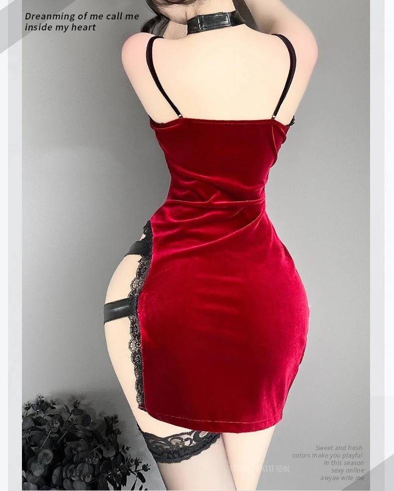 Disfraz Sexy Cosplay Vestido Cheongsam Encaje Rojo Chica Espía Halloween