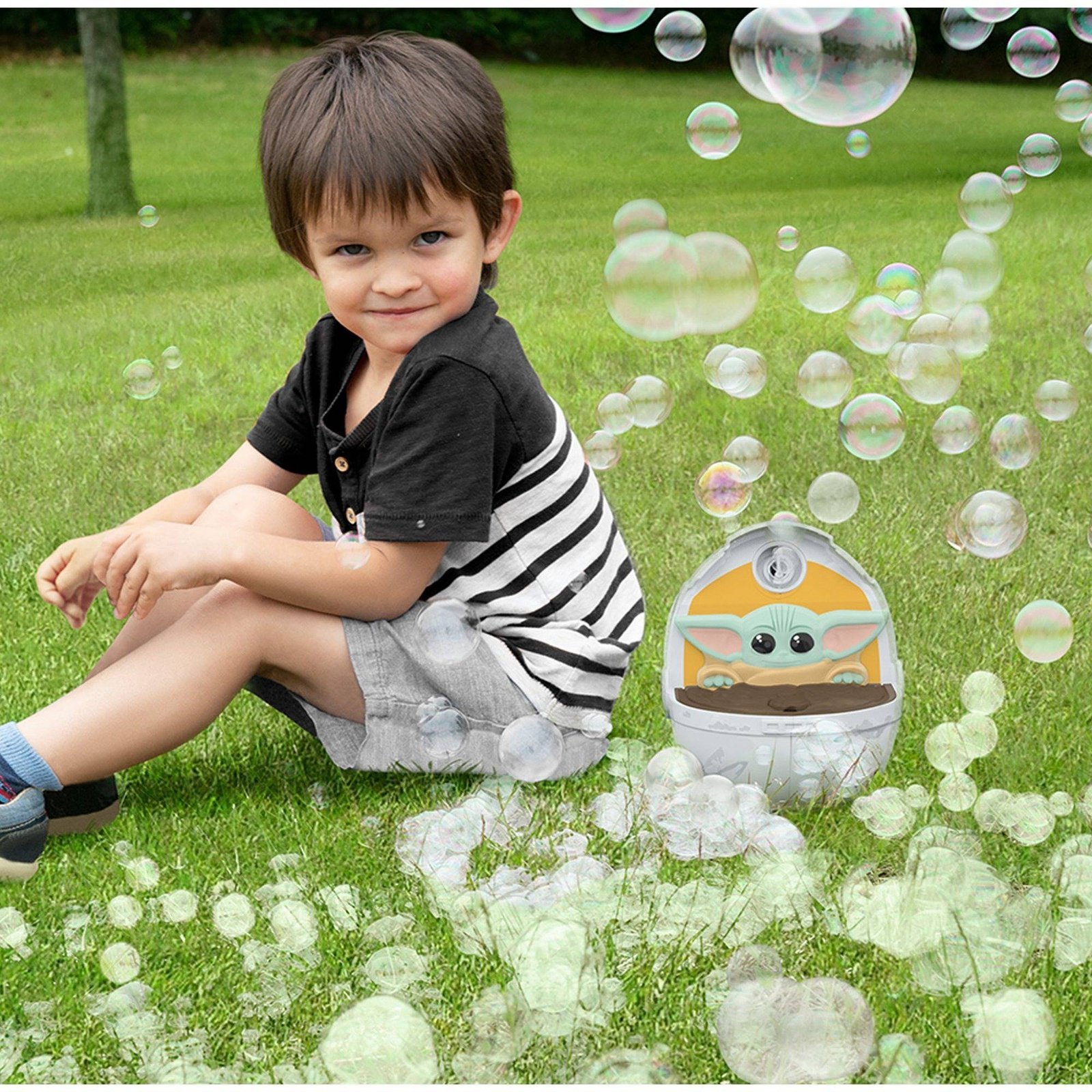 La máquina de burbujas Grogu para niños sopla toneladas de burbujas continuamente en el aire creando la nube de burbujas perfecta para que los niños jueguen dentro y debajo de ella.