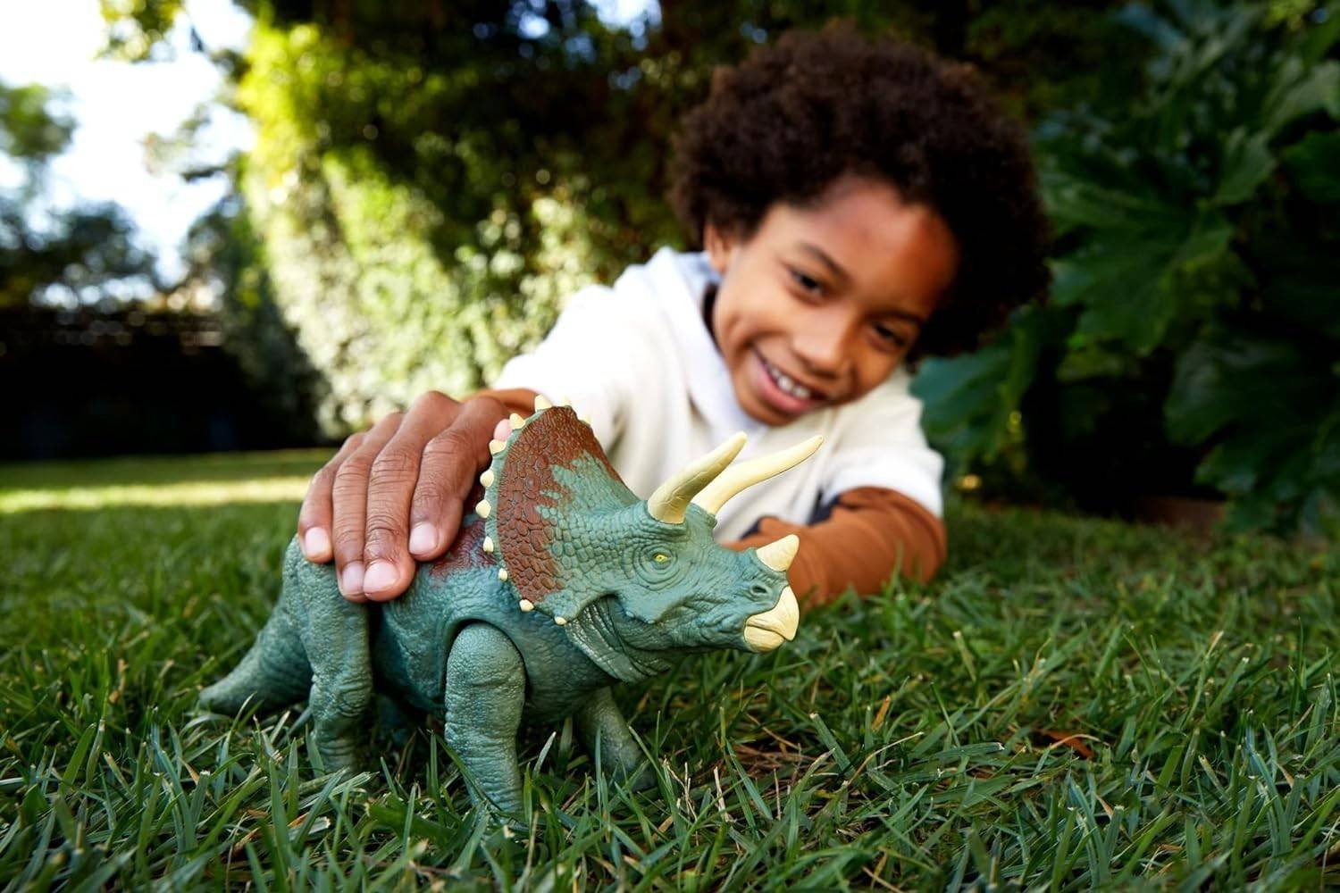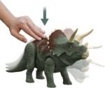 Prepárate para la emoción y la aventura con criaturas inspiradas en Jurassic World: Dominion con esta figura de acción Roar Strikers Triceratops con sonido. Estos dinosaurios de tamaño mediano no solo tienen sonido para dar vida al juego de rugidos, sino también una acción de ataque específica de la especie, que se activa al presionar el área de la cadera.