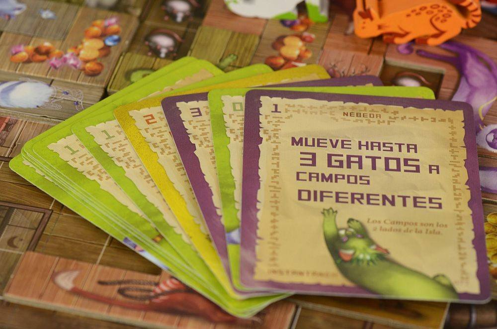 Cada lección que recopile le brindará otra forma personal de sumar puntos y hay 38 lecciones únicas disponibles. Completa lecciones, llena tu bote y mantén unidas a las familias de gatos para ganar puntos; el ganador será el jugador con más puntos después de cinco rondas.