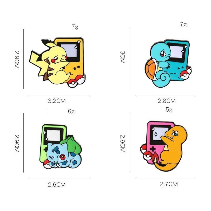 *4 Broches Pokemon (Pikachu, Squirtle, Bulbasaur, Charmander)