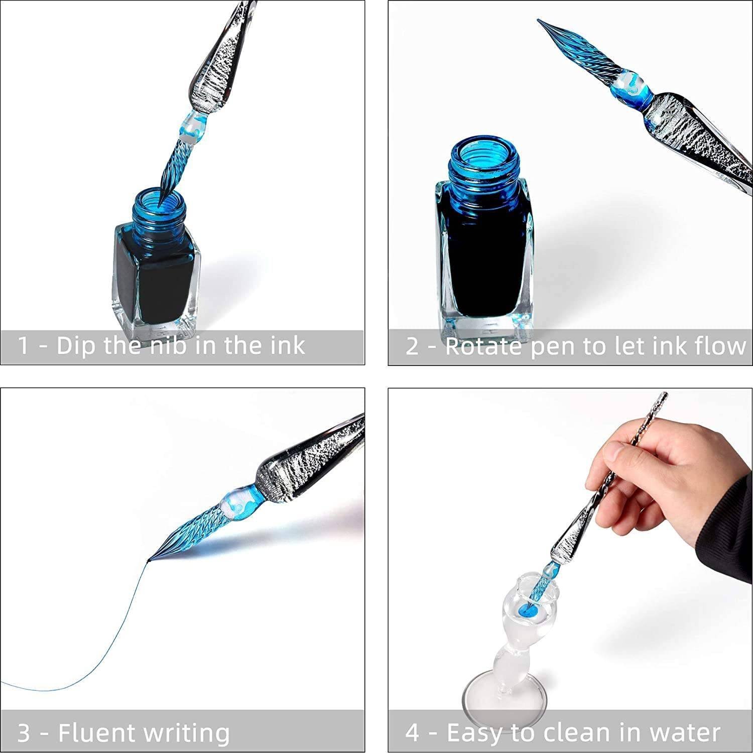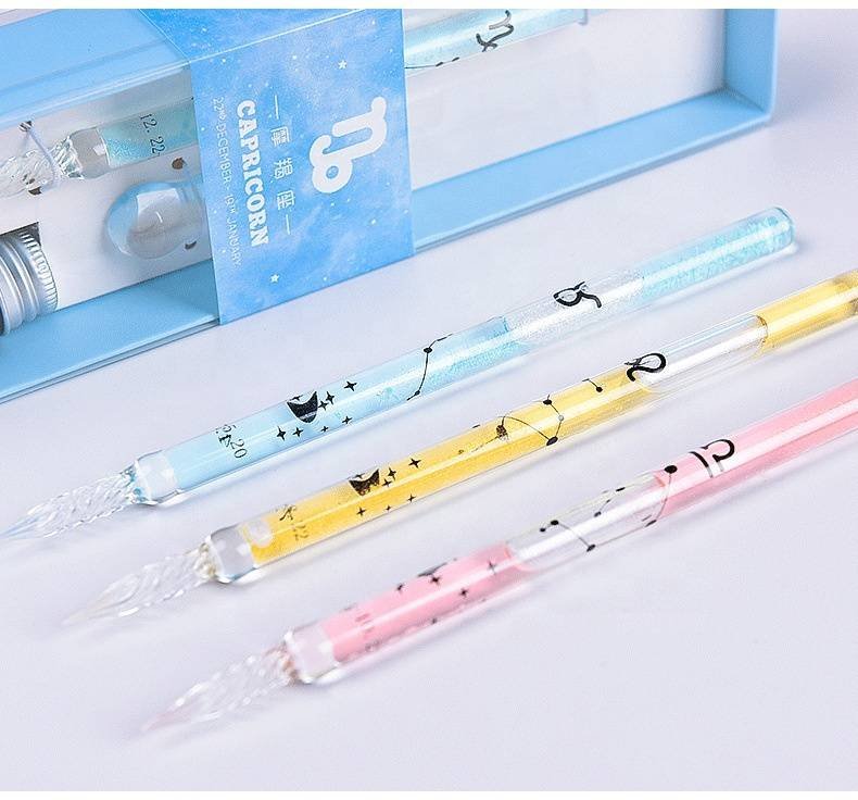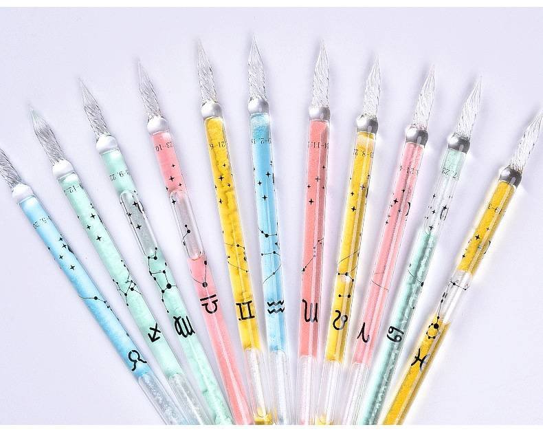 Pluma de inmersión de cristal hecha a mano con 12 constelaciones, pluma de firma de cristal, pluma estilográfica de cristal, regalo de negocios