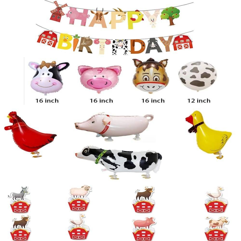 Set 20 Globos Látex Animales Granja Vaca Puerco Fiesta y Decoración